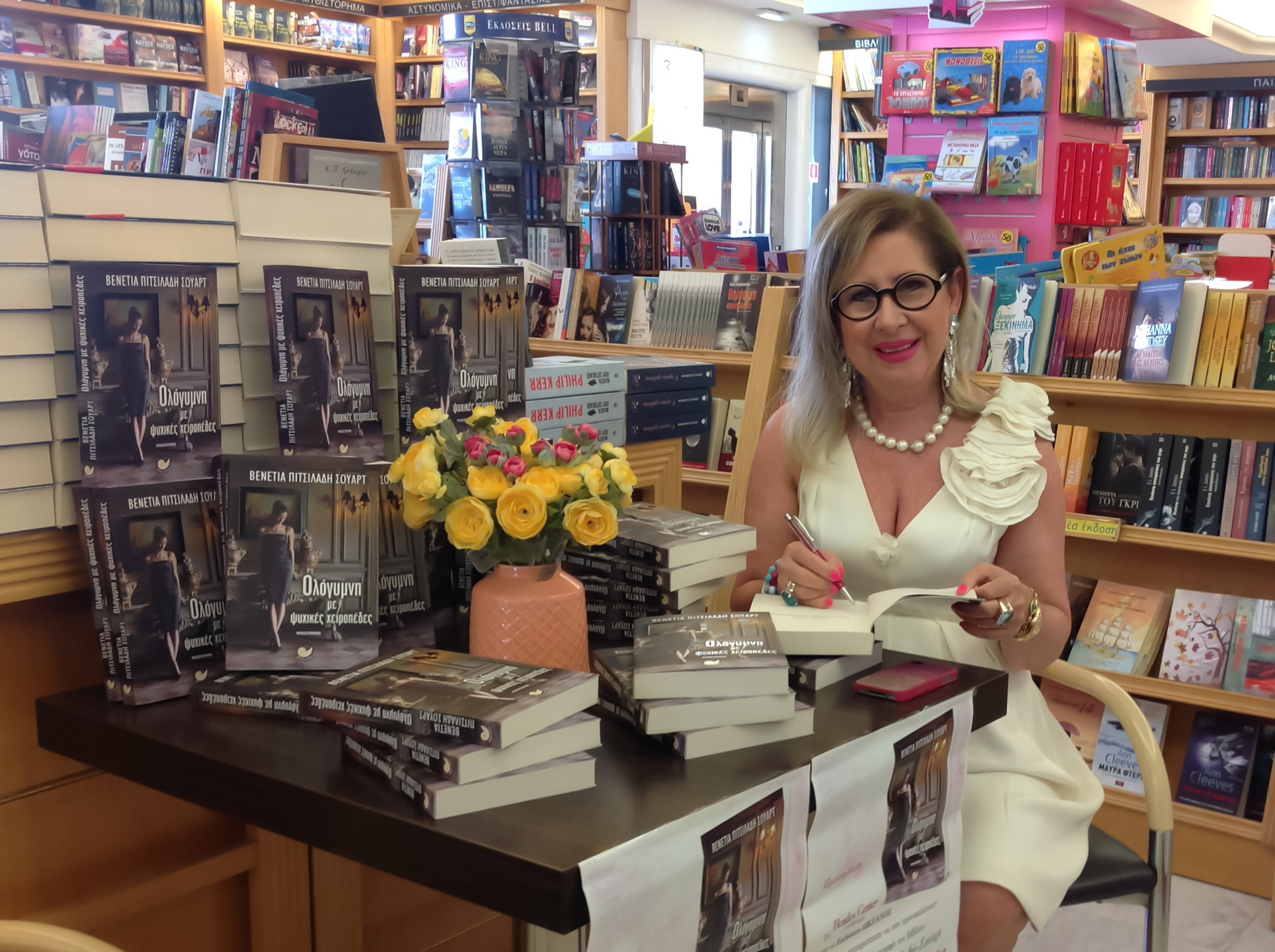 Υπογραφές αντιτύπων τού βιβλίου «Ολόγυμνη με ψυχικές χειροπέδες» στο χώρο των καταστημάτων Hondos στη Γλυφάδα