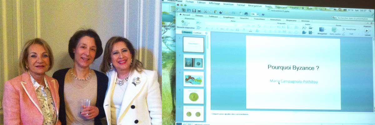 H συγγραφέας Βενετία Πιτσιλαδή – Chuard, παραβρέθηκε στη διάλεξη με θέμα, «Γιατί το Βυζάντιο;», η οποία πραγματοποιήθηκε στη Γενεύη και στα πλαίσια των εκδηλώσεων «Συναντήσεις της Δευτέρας», στη βίλα Rigot.