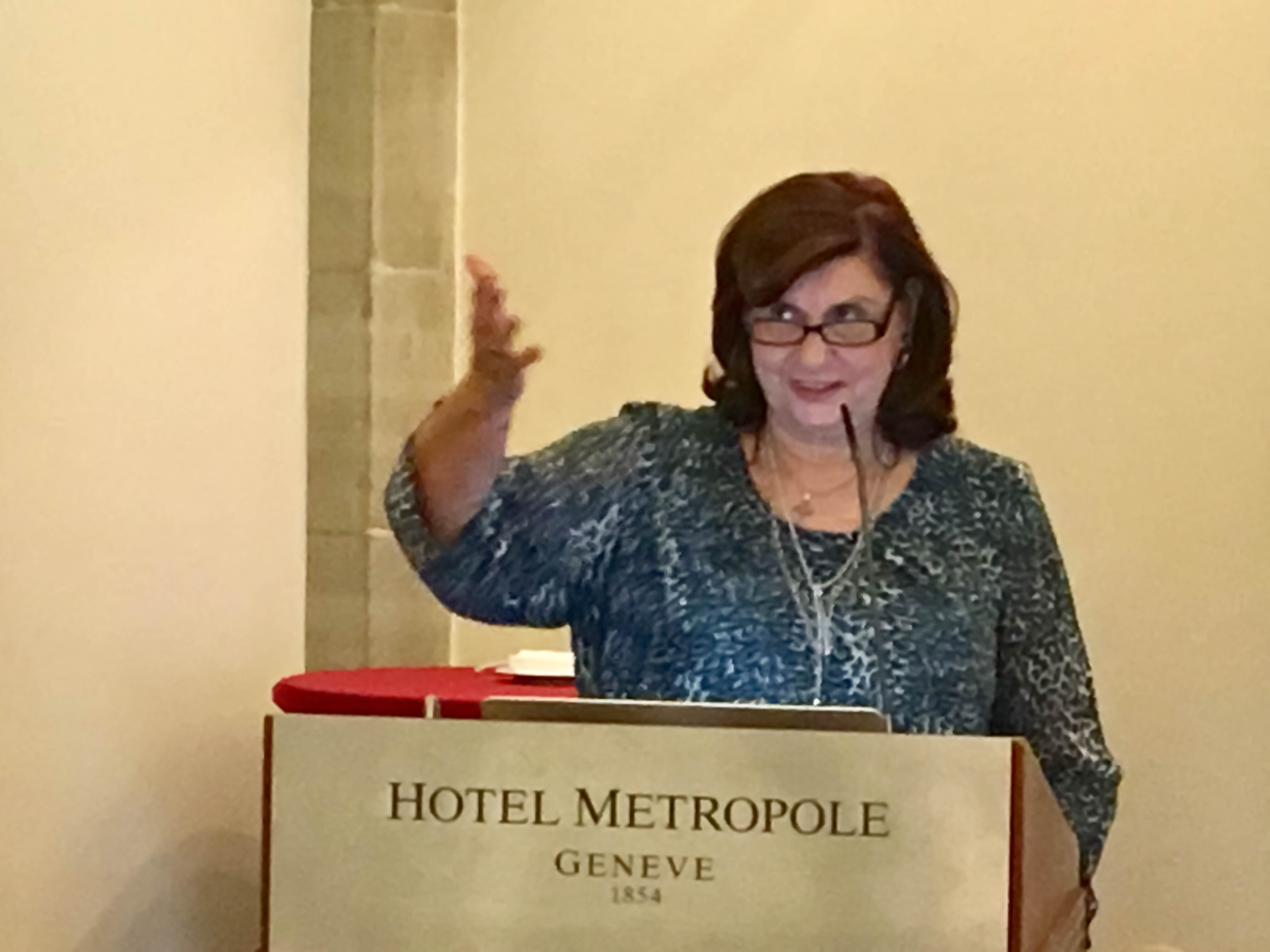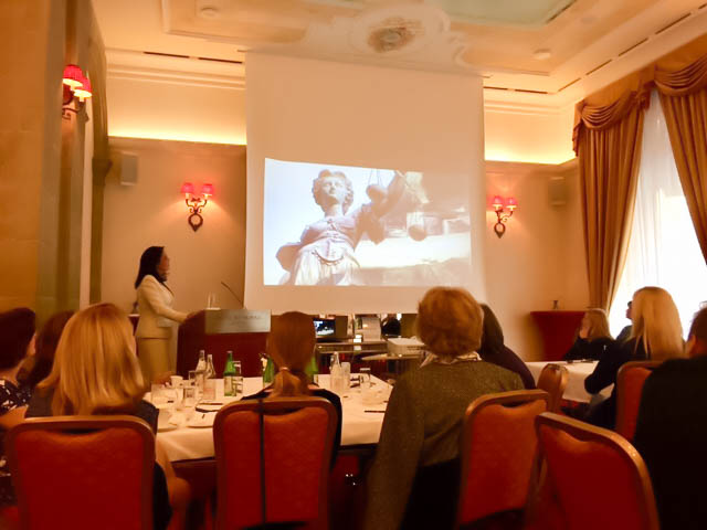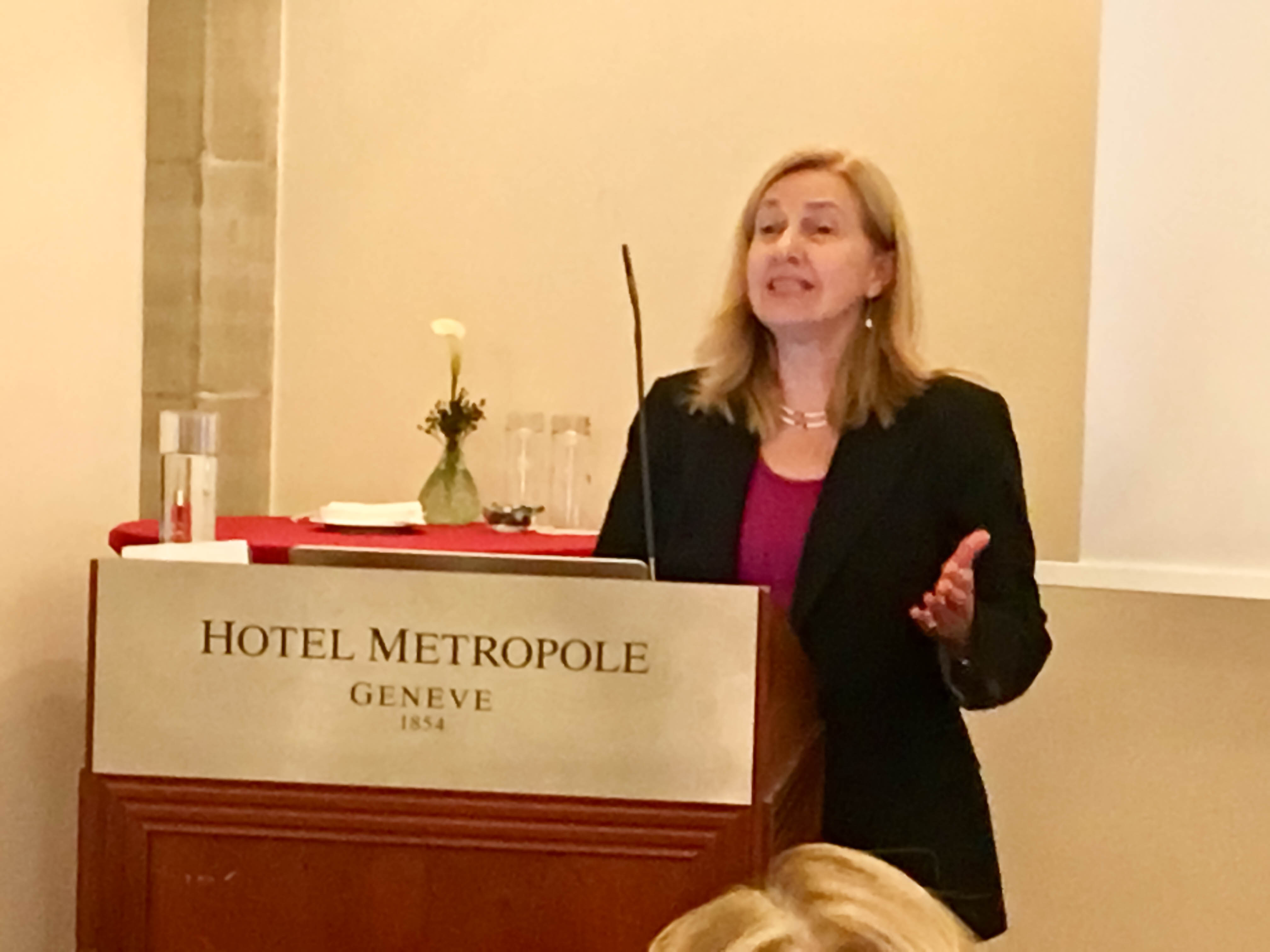 Η Πρόεδρος του Συλλόγου Ελληνίδων Κυριών Γενεύης, κα Έφη Θεοχαροπούλου καλωσόρισε θερμά την Υψηλή προσκεκλημένη η οποία στην ομιλία της πραγματεύτηκε το θέμα: