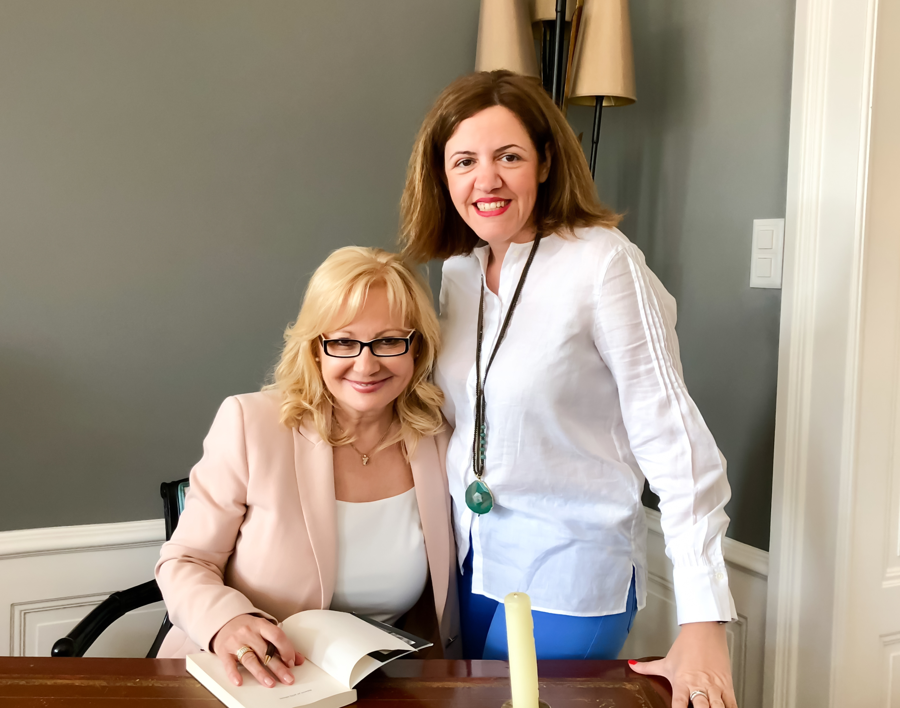 Την συγγραφέα συνόδευε η συνεργάτης της Μανούσια Κυπραίου, κοινωνιολόγος, ψυχολόγος, ψυχοθεραπεύτρια, αναλύτρια της εγκληματικής ψυχολογίας των δολοφόνων, ειδική στην συναισθηματική υποστήριξη θυμάτων εγκληματικών ενεργειών, και πολλά άλλα.