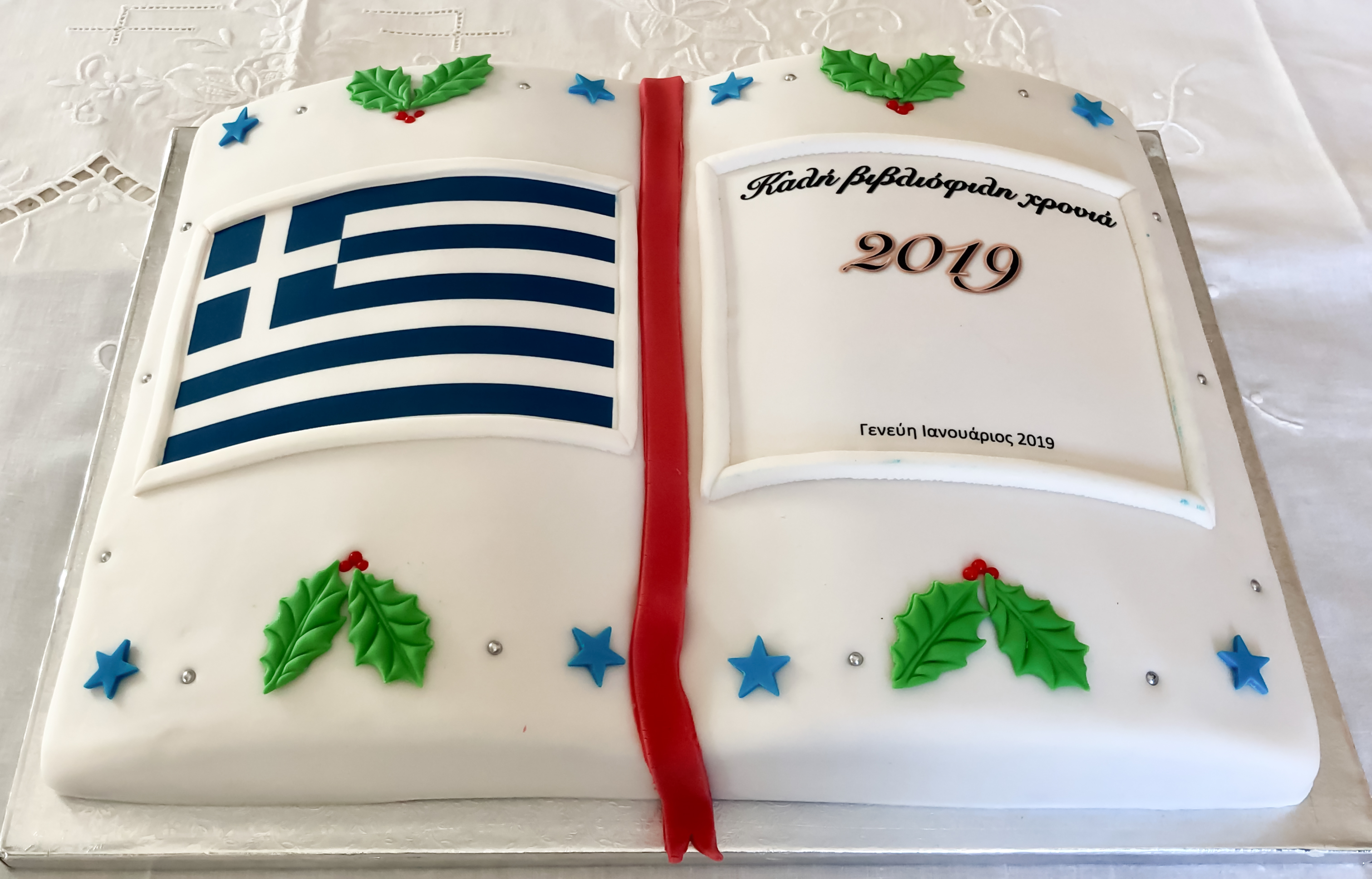 Με την ευκαιρία της συνάντησης, έγινε και η κοπή της πίτας του «Λογοτεχνικού Κύκλου Βιβλιόφιλων Γενεύης» για το 2019 την οποία επιμελήθηκε, καλλιτεχνικώς και γευστικώς, η κα Δήμητρα Μυλωνά και το φλουρί έπεσε στη βιβλιόφιλη κα Αριάδνη Βαβουρανάκη. Στον μπουφέ που ακολούθησε με εδέσματα και γλυκά που ετοίμασαν τα ίδια τα μέλη του Κύκλου, κυριαρχούσαν οι ευχές για μία καλή, και αναγνωστικά, χρονιά!