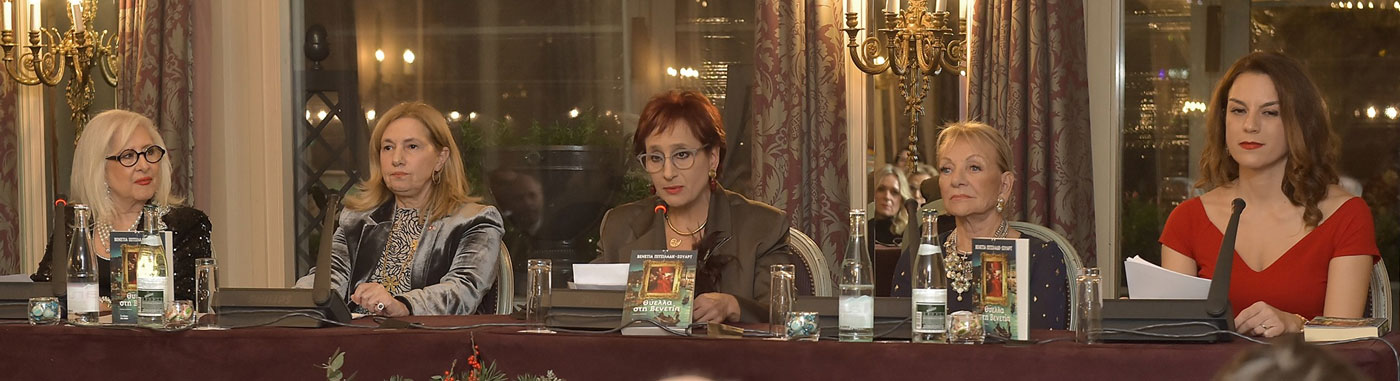 Στην κατάμεστη αίθουσα του ξενοδοχείου Beau-Rivage, κατοικία της αυτοκράτειρας Σίσσι, η συγγραφέας υποδέχθηκε τους καλεσμένους της, τον Σεβασμιότατο Μητροπολίτη Ελβετίας κύριο Μάξιμο, την πρέσβη της Ελλάδας στην Ελβετία, Χαρά Σκολαρίκου, τον πρέσβη στη Μόνιμη Αντιπροσωπεία, Παναγιώτη Στουρνάρα, τον Γενικό Πρόξενο της Ελλάδος στη Γενεύη, Θάνο Καφόπουλο, τον Διευθυντή του Γραφείου Διπλωματίας στη Γενεύη, Νίκο Οικονομίδη, καθώς και όλους τους Προέδρους και τα μέλη των Συμβουλίων των Ελληνικών Συλλόγων Ελβετίας.