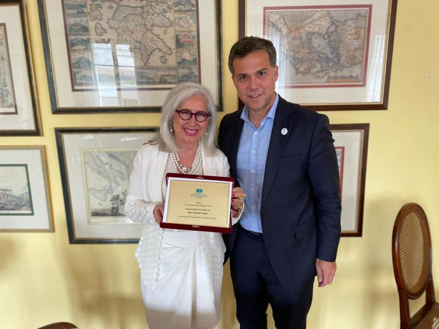 Η Πρόεδρος κ. Πιτσιλαδή μάς συγκίνησε όλους, καθώς είχε ετοιμάσει και απένειμε σε όλα τα μέλη αναμνηστική κονκάρδα και τιμητικό βραβείο. Προσκάλεσε ονομαστικά ένα -ένα τα μέλη και έκανε την απονομή, τονίζοντας την ιδιαίτερη συνεισφορά κάθε μέλους στις δραστηριότητες του Κύκλου και δίνοντας την ευκαιρία σε κάθε μέλος να πει λίγα λόγια για την προσωπική του εμπειρία. Στη συνέχεια, ο κ. Γεννηματάς, εκ μέρους των μελών του Κύκλου, προσέφερε ανθοδέσμη και αναμνηστική πλακέτα στην Πρόεδρο κ. Πιτσιλαδή, η οποία τα δέχτηκε εμφανώς συγκινημένη και ευχαρίστησε θερμά.