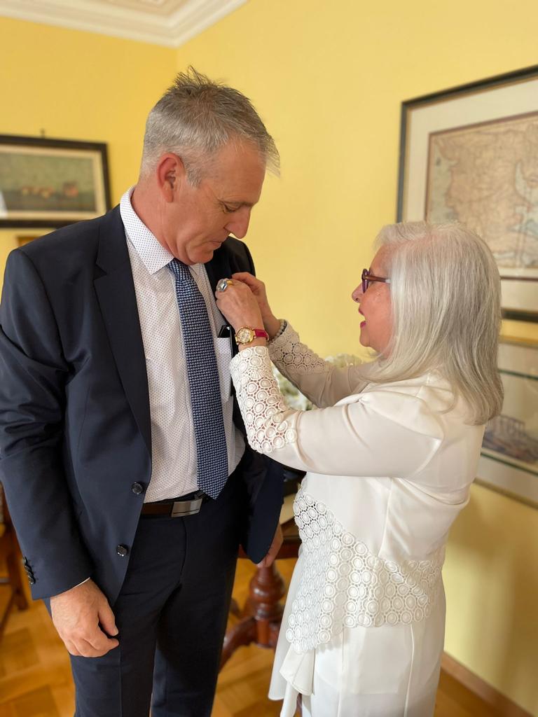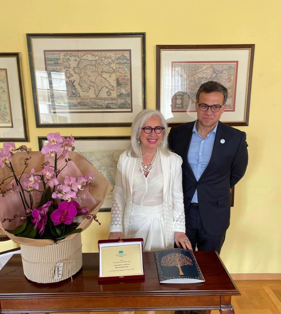 Εν συνεχεία, ανέπτυξε το θέμα “Διπλωματία και συγγραφικό έργο” και, υπογραμμίζοντας την ευρύτητα της εν λόγω θεματικής, εστίασε σε τρεις σημαντικές προσωπικότητες, επιχειρώντας ένα περίγραμμα του πως οι δύο κόσμοι -διπλωματία και συγγραφή- τέμνονται και συναντιούνται δημιουργικά. Τόνισε ότι ο διπλωμάτης έχει το προνόμιο να βρίσκεται σε ένα ιδανικό σημείο παρατήρησης, συχνά κοντά στην Ιστορία, ενώ η γεωγραφική απόσταση που τον χωρίζει από την πατρίδα του, δίνει τον χώρο και την απόσταση για χρήσιμους αναστοχασμούς, συνθέσεις, αποδομήσεις και πνευματικές κατασκευές.