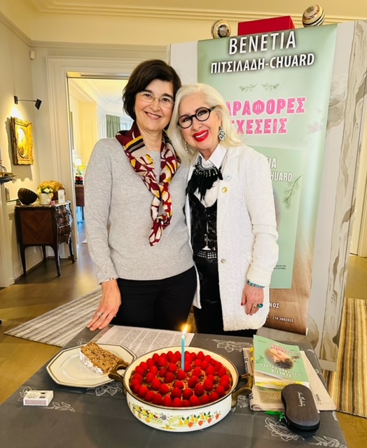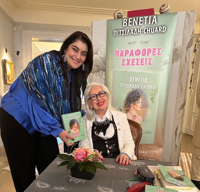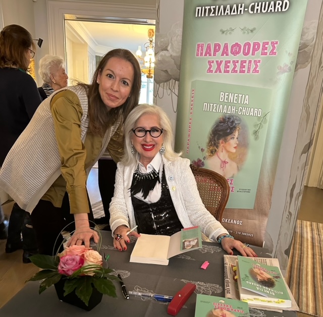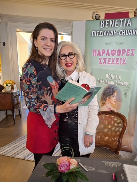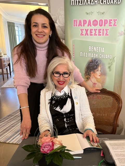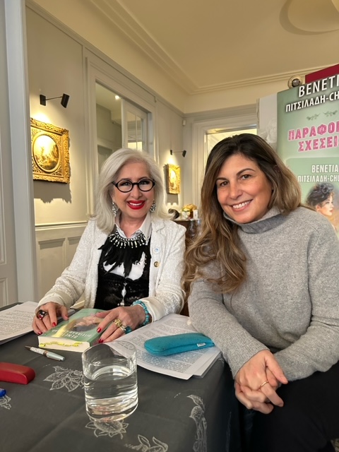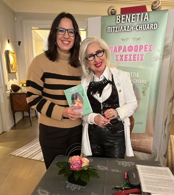 Η συγγραφέας Βενετία Πιτσιλαδή Chuard και Υπεύθυνη του Κύκλου, παρουσίασε το καινούργιο της βιβλίο «ΠΑΡΑΦΟΡΕΣ ΣΧΕΣΕΙΣ» . Η βιβλιόφιλη και Γραμματέας του Κύκλου Σοφία Ματθοπούλου μίλησε για την συγγραφέα και το έργο της , με πολύ συναισθηματικό και συγκινητικό τρόπο. Η Βενετία παρουσίασε το βιβλίο της και μίλησε για την γοητευτική εμπειρία την οποία απέκτησε ως συγγραφέας, τα τελευταία 14 χρόνια.
