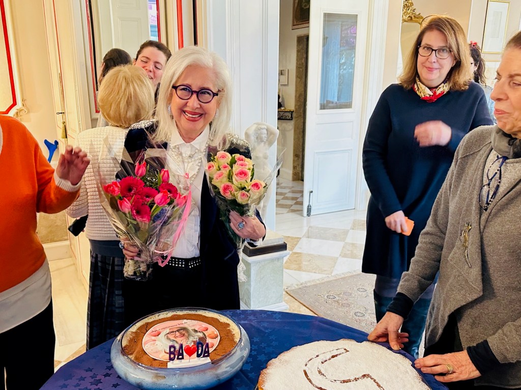 Κατόπιν γιορτάσαμε τα γενέθλια της Υπεύθυνης των Βιβλιόφιλων με τούρτα, λουλούδια και τραγούδια.