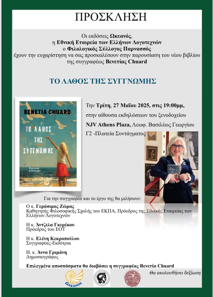 Αγαπημένοι μου σας ευχαριστώ όλους θερμά για την παρουσία σας στην χθεσινή εκδήλωση για το βιβλίο μου, « Το λάθος της συγγνώμης».